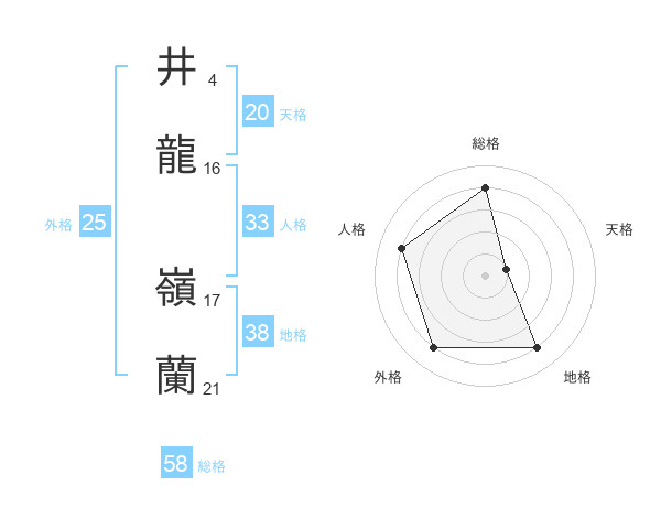 井龍 嶺蘭さんの総格は58画の4点!
