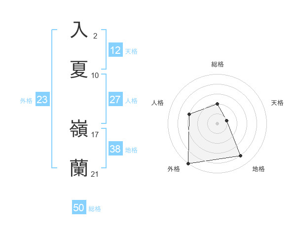 入夏 嶺蘭さんの総格は50画の2点!