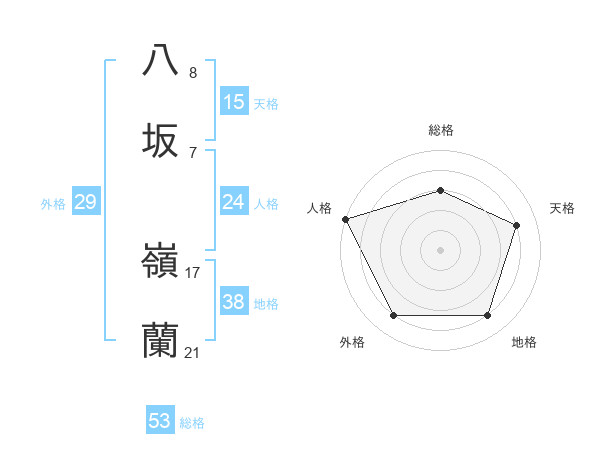 八坂 嶺蘭さんを姓名の画数から五運を鑑定