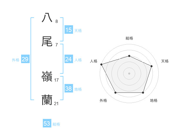 八尾 嶺蘭さんの総格は53画の3点!