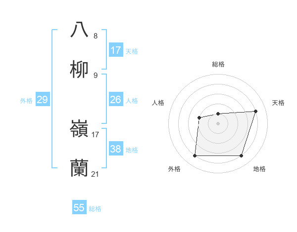 八柳 嶺蘭さんの総格は55画の1点!