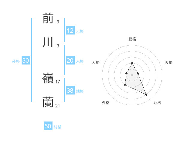 前川 嶺蘭さんの総格は50画の2点!