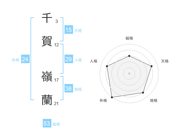 千賀 嶺蘭さんを姓名の画数から五運を鑑定
