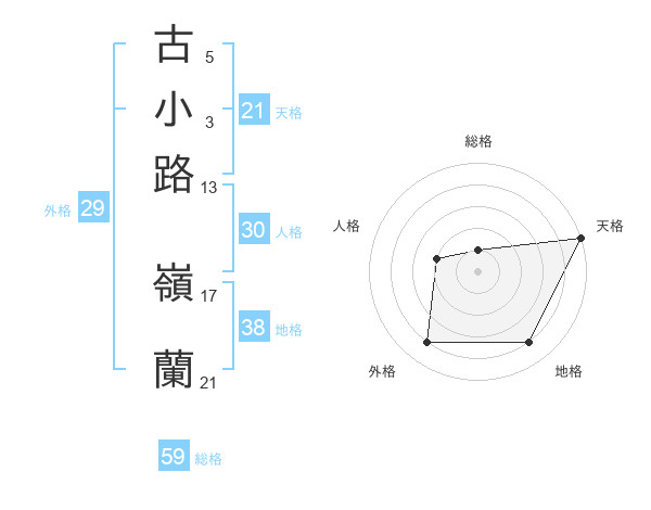 古小路 嶺蘭さんの天格は21画の5点!