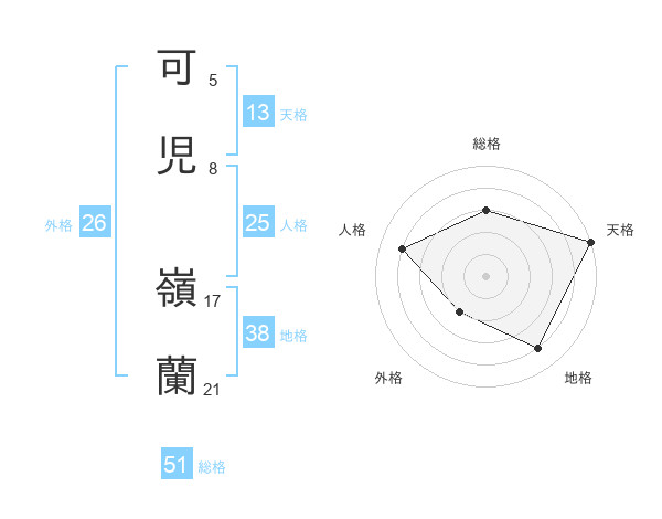 可児 嶺蘭さんの総格は51画の3点!