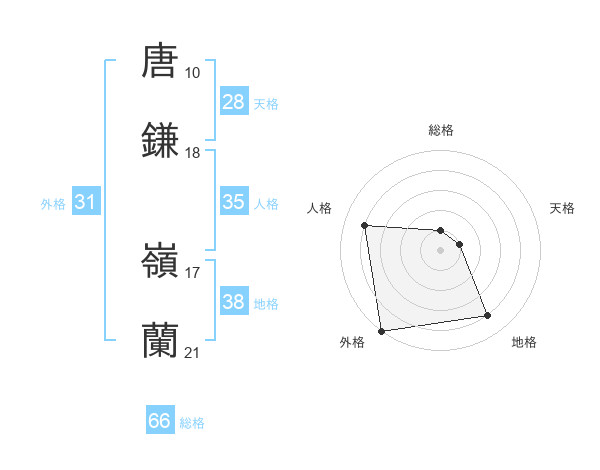 唐鎌 嶺蘭さんの総格は66画の1点!