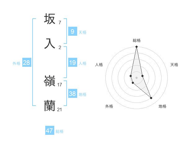 坂入 嶺蘭さんを姓名の画数から五運を鑑定