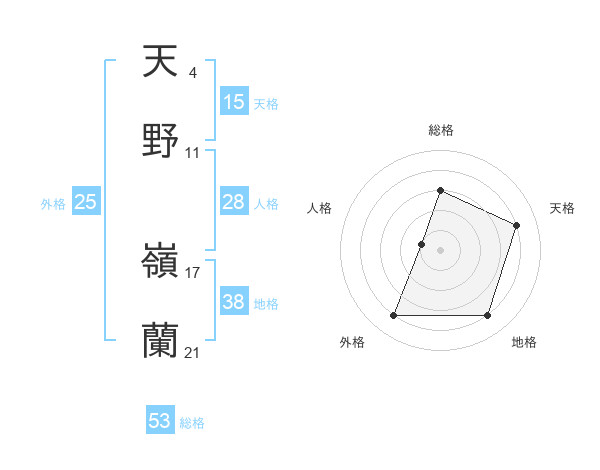 天野 嶺蘭さんを姓名の画数から五運を鑑定