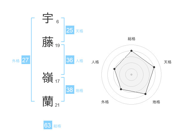 宇藤 嶺蘭さんを姓名の画数から五運を鑑定