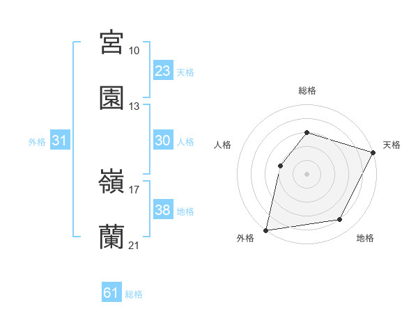宮園 嶺蘭さんを姓名の画数から五運を鑑定