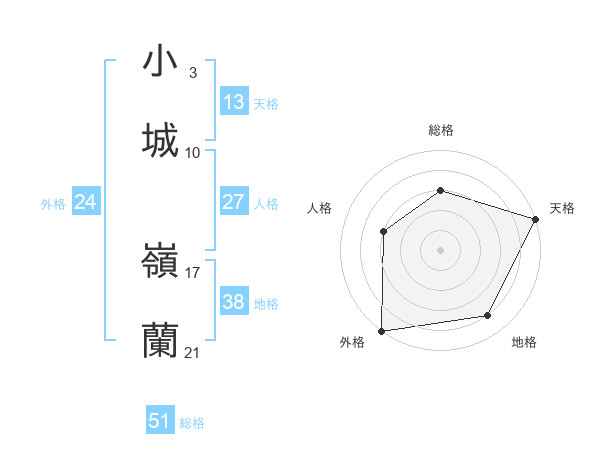 小城 嶺蘭さんの総格は51画の3点!