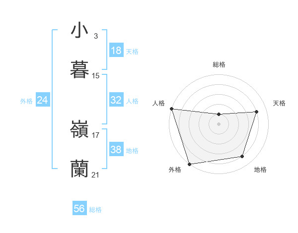 小暮 嶺蘭さんの総格は56画の1点!
