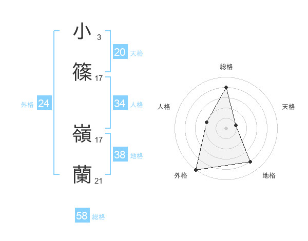 小篠 嶺蘭さんの総格は58画の4点!