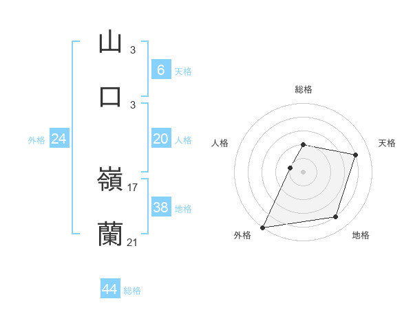 山口 嶺蘭さんの総格は44画の2点!