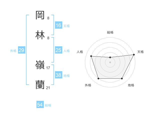 岡林 嶺蘭さんの天格は16画の5点!