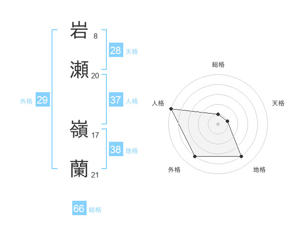岩瀬 嶺蘭さんの地格は38画の4点!