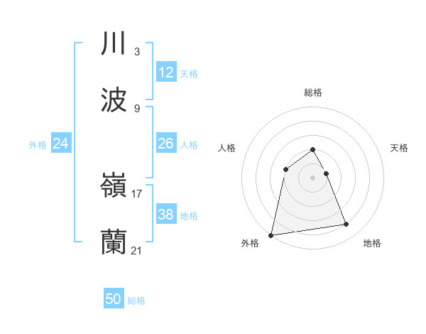 川波 嶺蘭さんの総格は50画の2点!