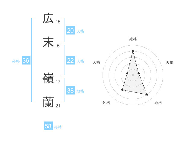 広末 嶺蘭さんを姓名の画数から五運を鑑定