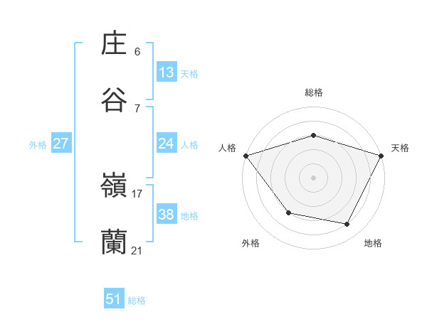 庄谷 嶺蘭さんの総格は51画の3点!