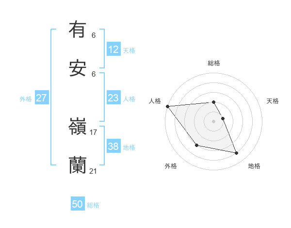 有安 嶺蘭さんを姓名の画数から五運を鑑定