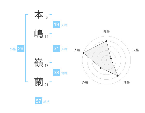 本嶋 嶺蘭さんの総格は57画の4点!
