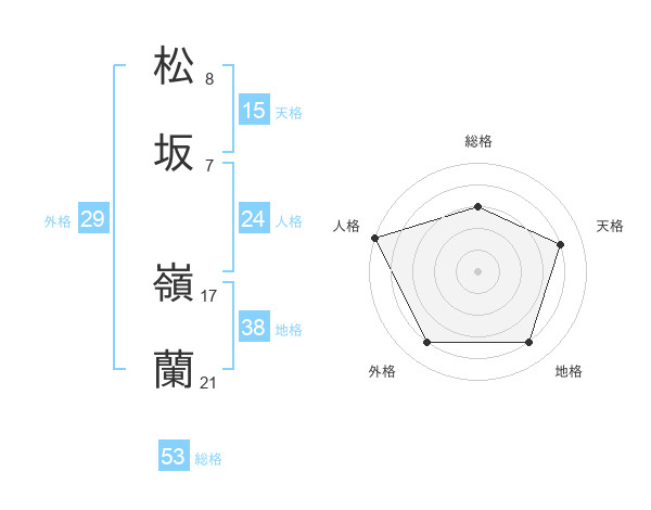 松坂 嶺蘭さんの総格は53画の3点!