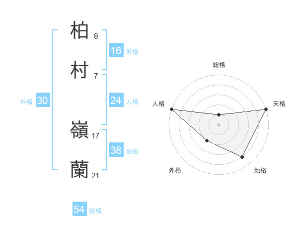 柏村 嶺蘭さんを姓名の画数から五運を鑑定