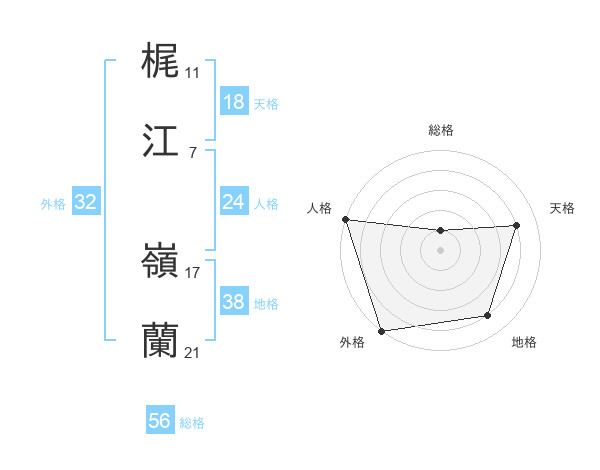 梶江 嶺蘭さんの天格は18画の4点!