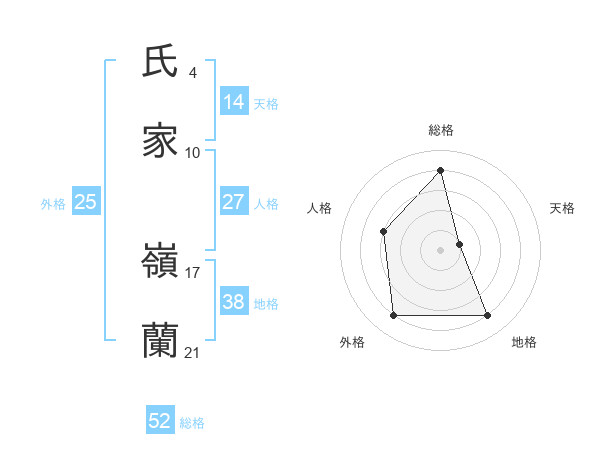 氏家 嶺蘭さんを姓名の画数から五運を鑑定