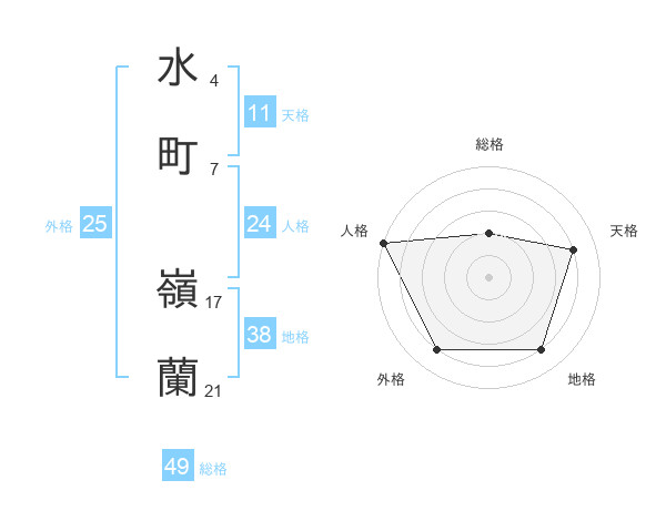 水町 嶺蘭さんを姓名の画数から五運を鑑定