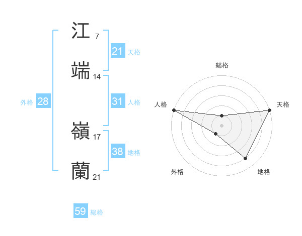 江端 嶺蘭さんの天格は21画の5点!