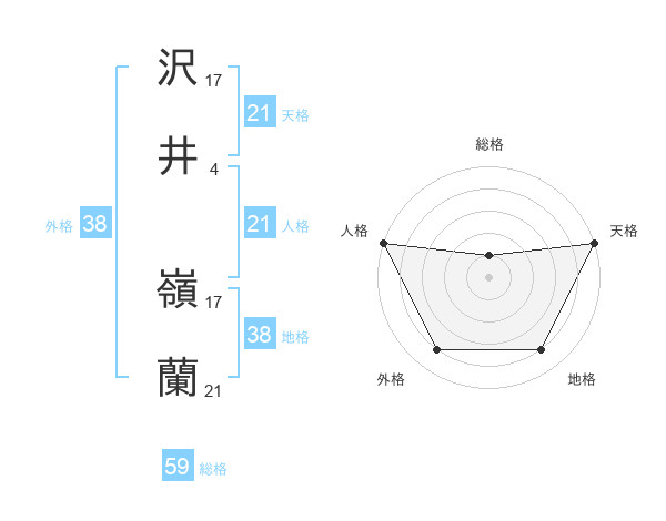 沢井 嶺蘭さんの地格は38画の4点!