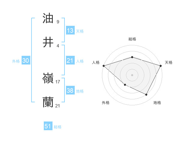 油井 嶺蘭さんの総格は51画の3点!