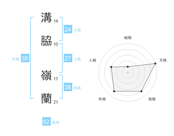 溝脇 嶺蘭さんの天格は24画の5点!