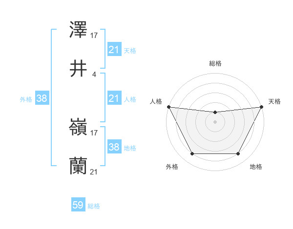 澤井 嶺蘭さんの外格は38画の4点!