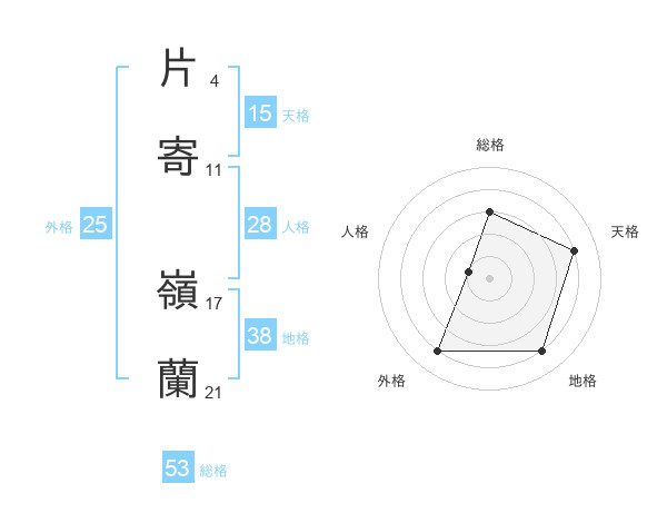 片寄 嶺蘭さんの総格は53画の3点!