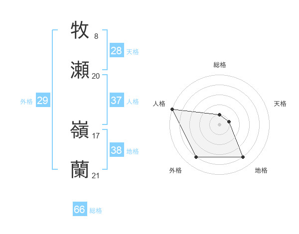 牧瀬 嶺蘭さんの人格は37画の5点!