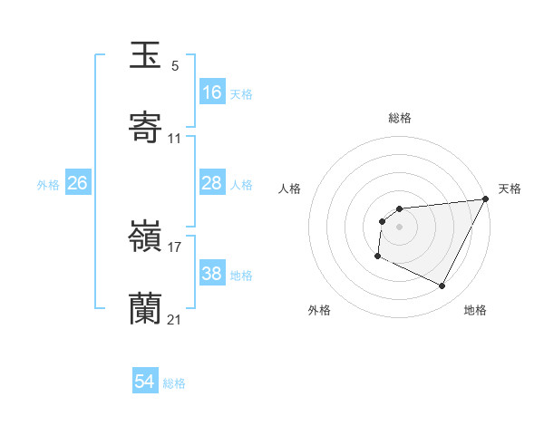 玉寄 嶺蘭さんを姓名の画数から五運を鑑定