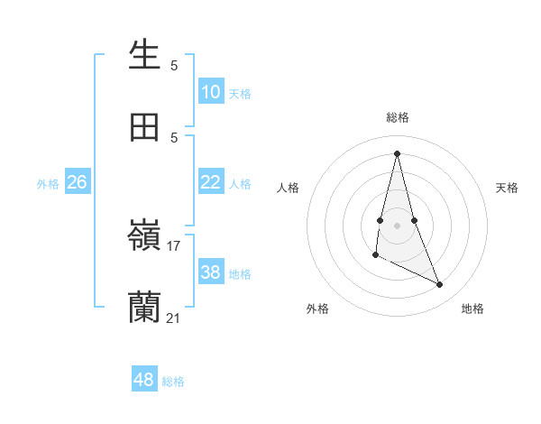 生田 嶺蘭さんを姓名の画数から五運を鑑定