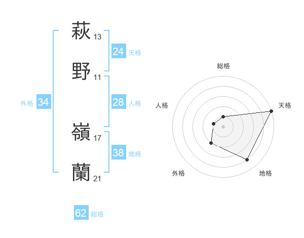 萩野 嶺蘭さんの天格は24画の5点!