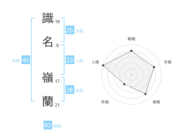 識名 嶺蘭さんの総格は63画の4点!