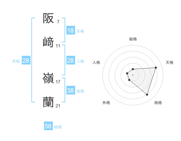 阪﨑 嶺蘭さんの天格は18画の4点!