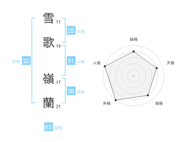 雪歌 嶺蘭さんの総格は63画の4点!