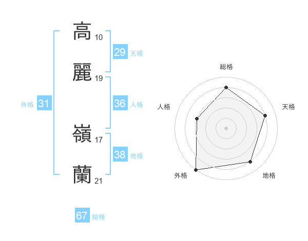 高麗 嶺蘭さんの総格は67画の4点!