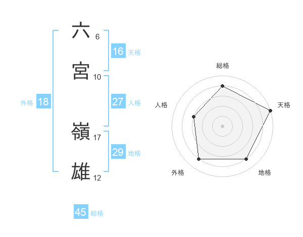 六宮 嶺雄さんの総格は45画の4点!