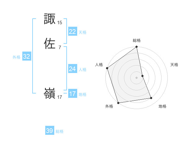 諏佐 嶺さんの天格は22画の1点!
