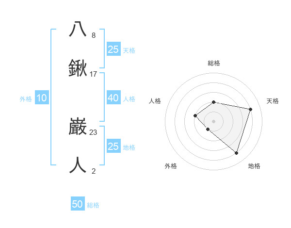 八鍬 巌人さんの天格は25画の4点!