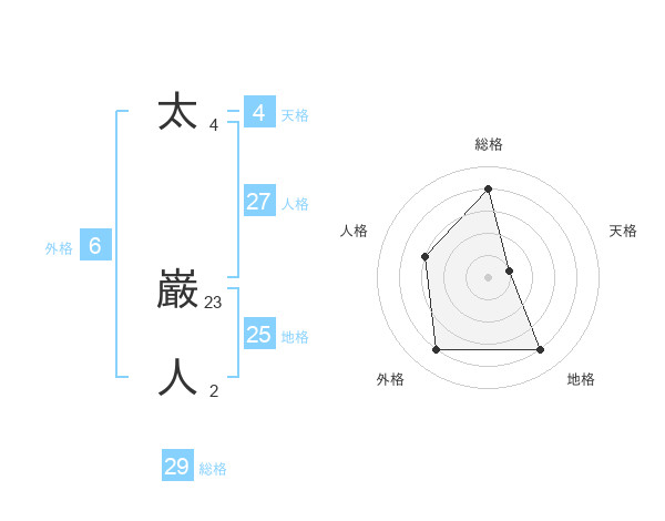 太 巌人さんの総格は29画の4点!