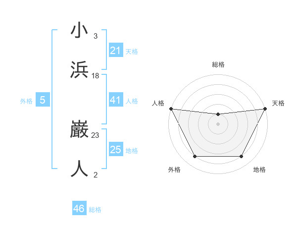 小浜 巌人さんの天格は21画の5点!