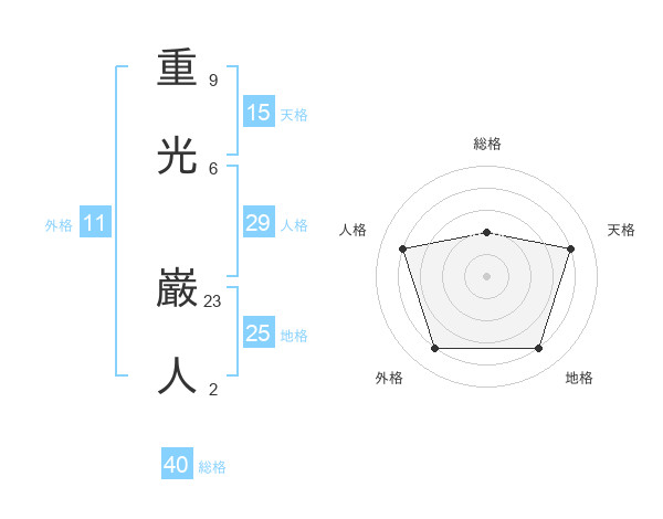 重光 巌人さんの地格は25画の4点!